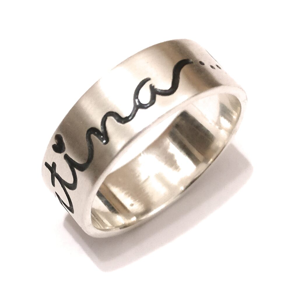 Anell de plata personalitzat amb el nom que desitgis, gravat a mà.