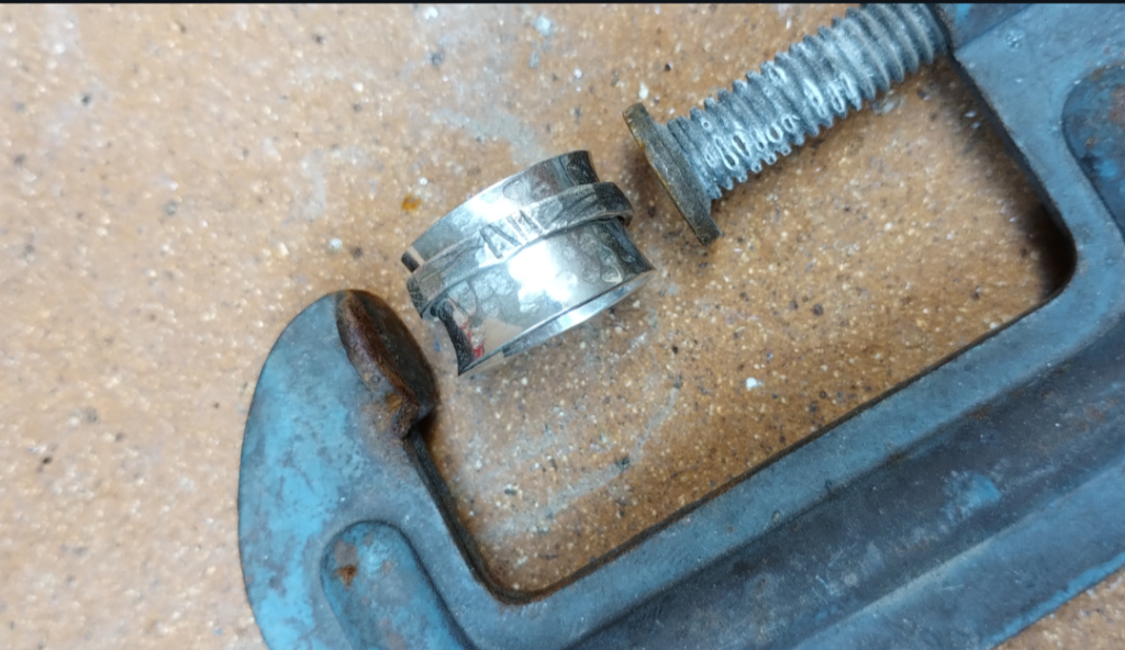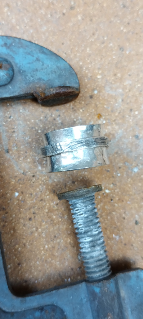 Anell spinner de plata. El cercle del mig balla i no surt, és gustós fer-lo moure.