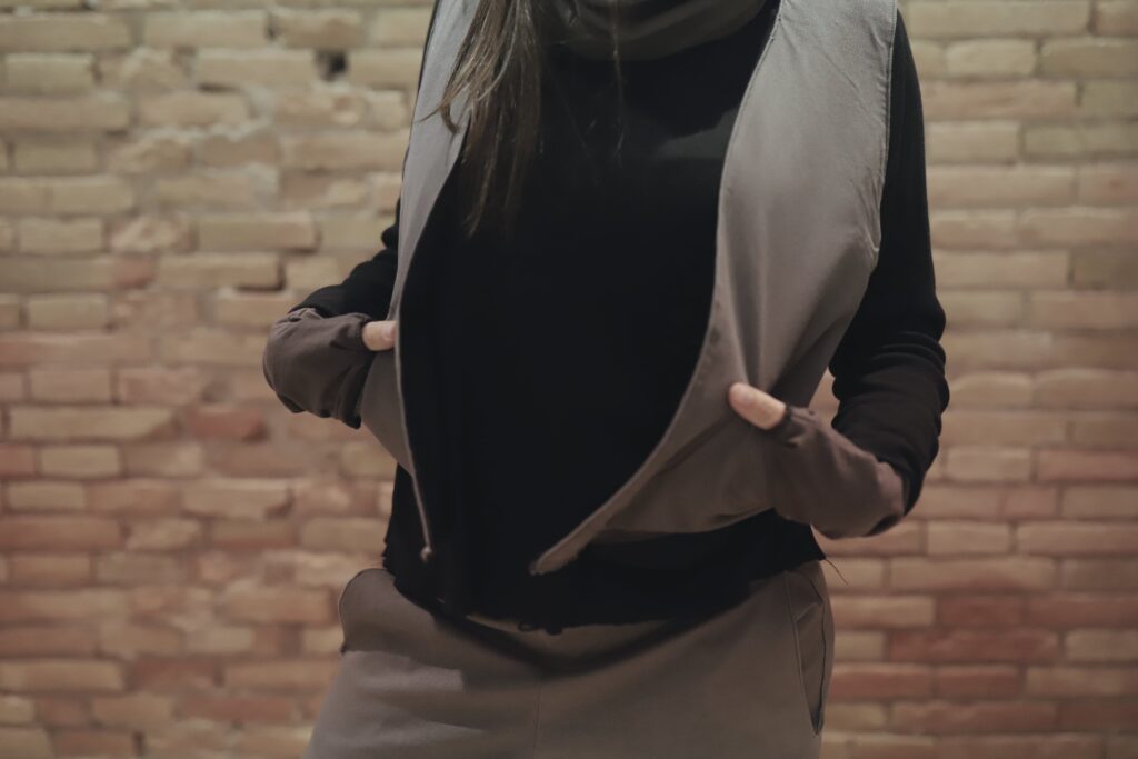 Armilla amb butxaques davanteres. Amb acabats al viu, tant a les butxaques com al baix.
