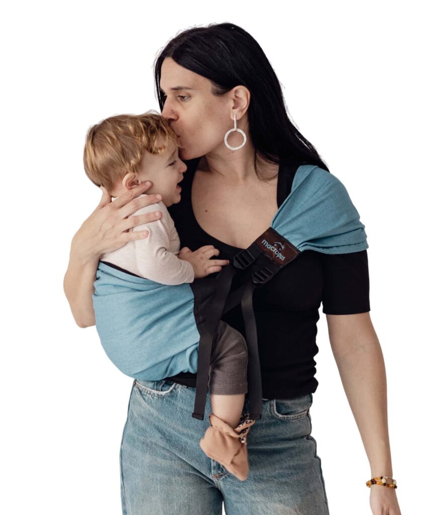 Bandolera de cotó amb tensor regulador de sivella. És un portanadó apte des de els 8 mesos fins als 4 anys. Des de que el nadó ja seu sol fins als 20kg. Porteig al maluc. Teixit de cotó 100%. Fàcil d’ajustar amb regulador de sivella.
