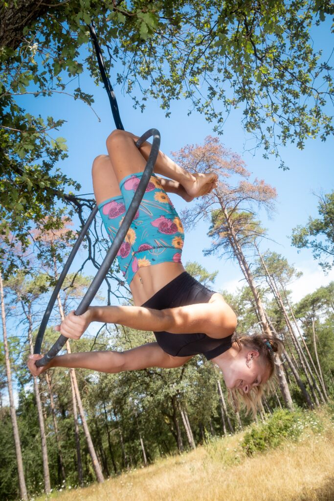 Biker per sobre del genoll. El material és elàstic i transpirable, ideal per practicar diferents disciplines de moviment, des de les acrobàcies, el yoga, l’escalada o el quotidià.