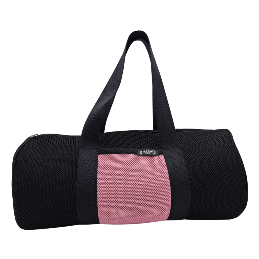 Material: Aquest Bossa Cilíndrica està fet a mà a Barcelona amb teixit tècnic 3D. És molt lleuger i, pel seu tipus de disseny i confecció, és una peça única i duradora.