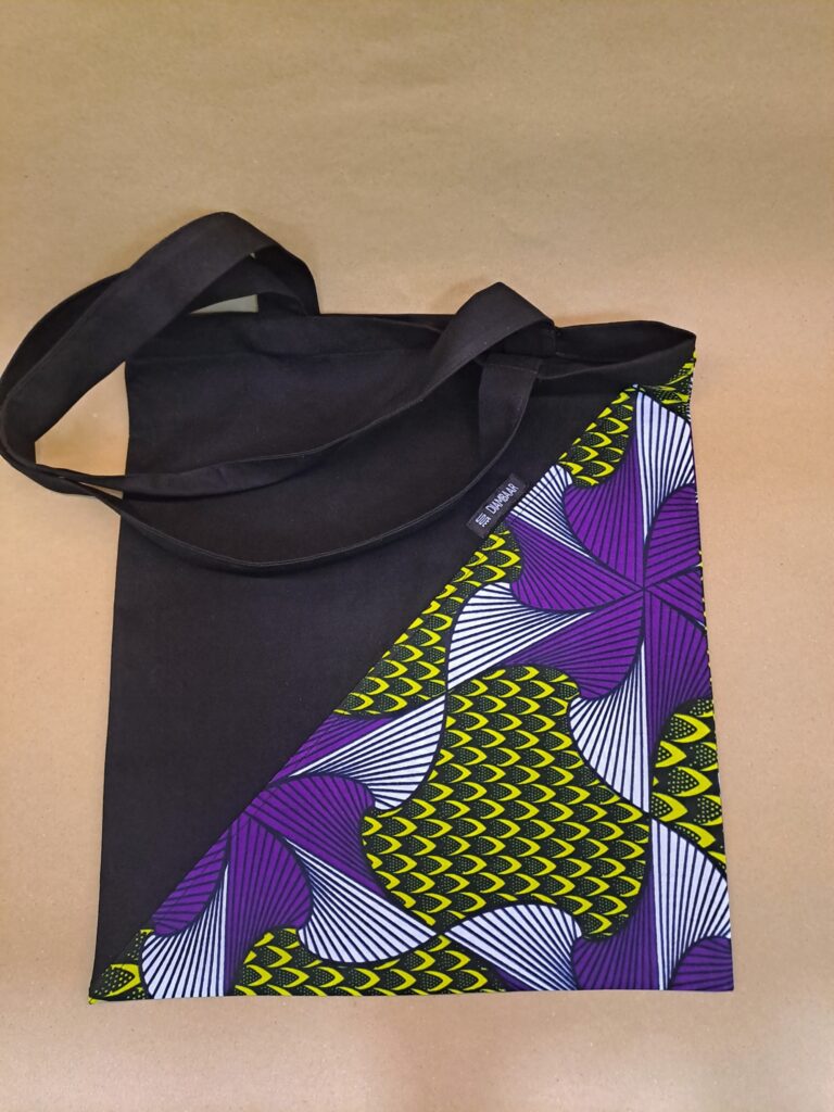 Bossa de wax combinada amb sarja negra. 100% cotó. Mides Ample 36 * Alt 40 cm