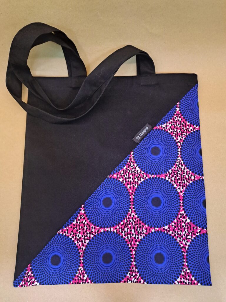 Bossa de wax combinada amb sarja negra. 100% cotó. Mides Ample 36 * Alt 40 cm
