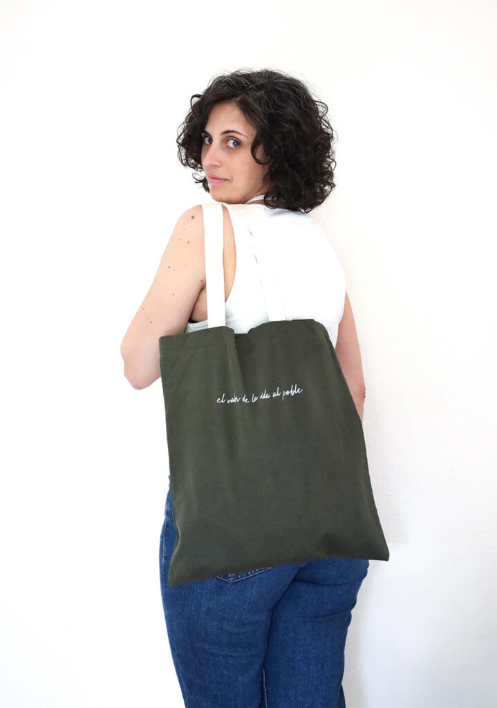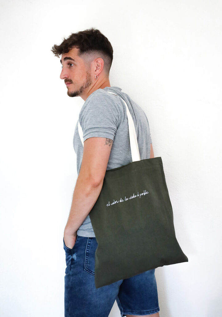 Bossa amb el lema de la marca “El valor de la vida a poble” brodat, per transmetre aquest sentiment i orgull allà on vagis. Roba 100% cotó, de producció integrada, que garanteix l’ús de productes químics no tòxics per la pell ni el planeta. Gramatge del teixit: 207 grs/m2.