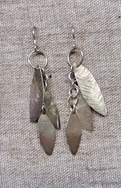 Arracades de ganxo de plata amb cadena i fulles mòbils penjant.