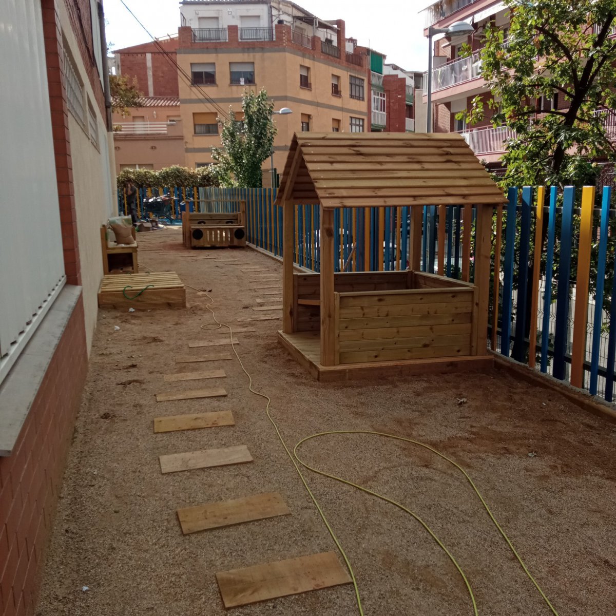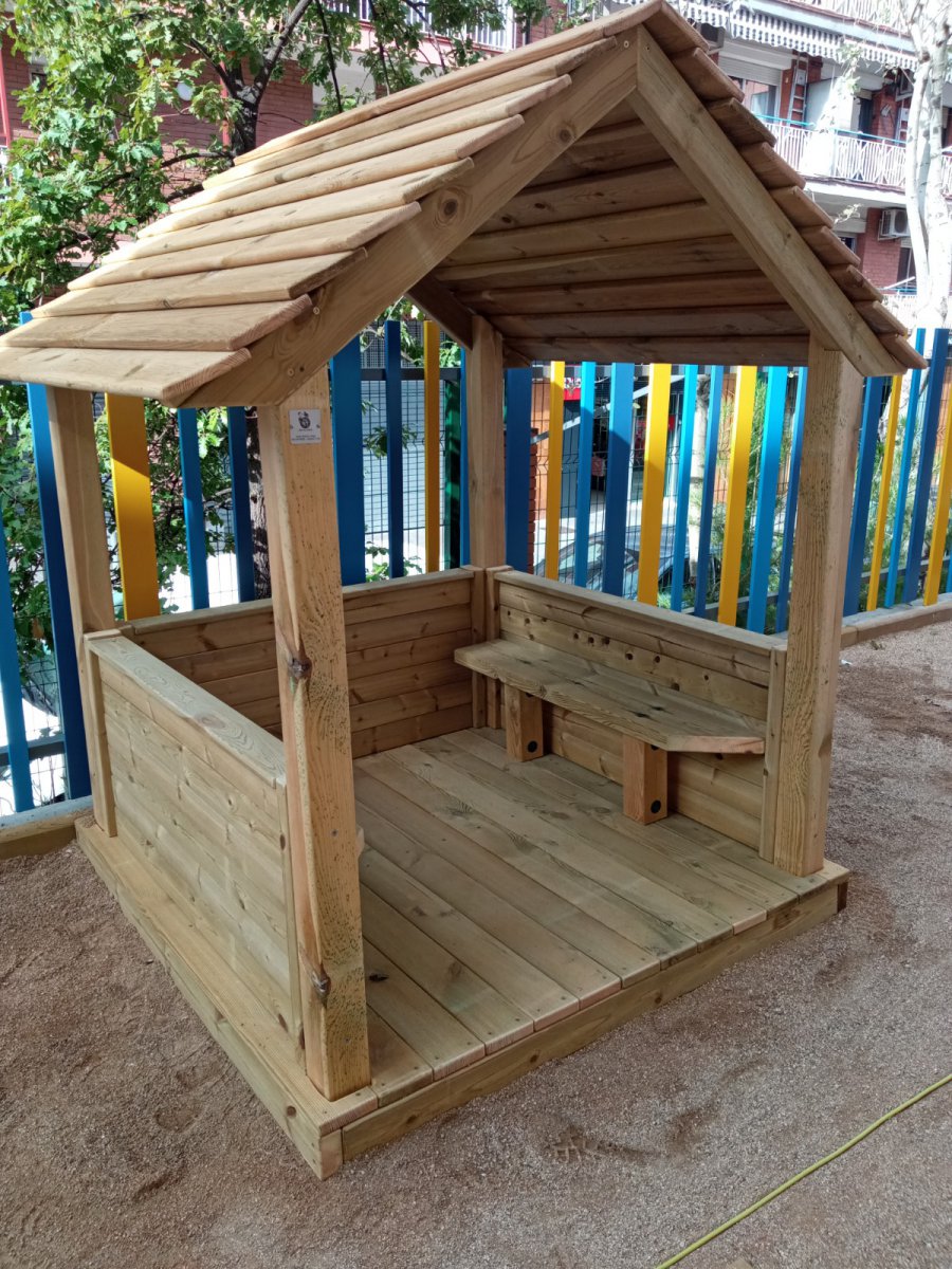 La caseta esdevé el racó per a trobar-se i tot jugant, conèixer més a l’altre a través d’una conversa íntima, compartint un esmorzar o observant el que passa a fora. Sempre que anem a una escola la caseta està plena d’infants. Un element tan clàssic com viu. No hi pot faltar a cap pati!