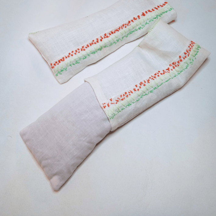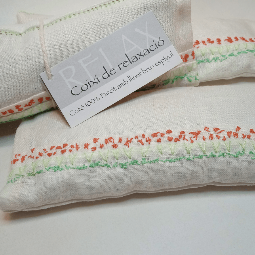 El pes del llinet pressiona lleugerament les parpelles, fet que facilita la relaxació. Mentrestant, l'olor de l'espígol elimina tensions i ens ajuda a respirar.