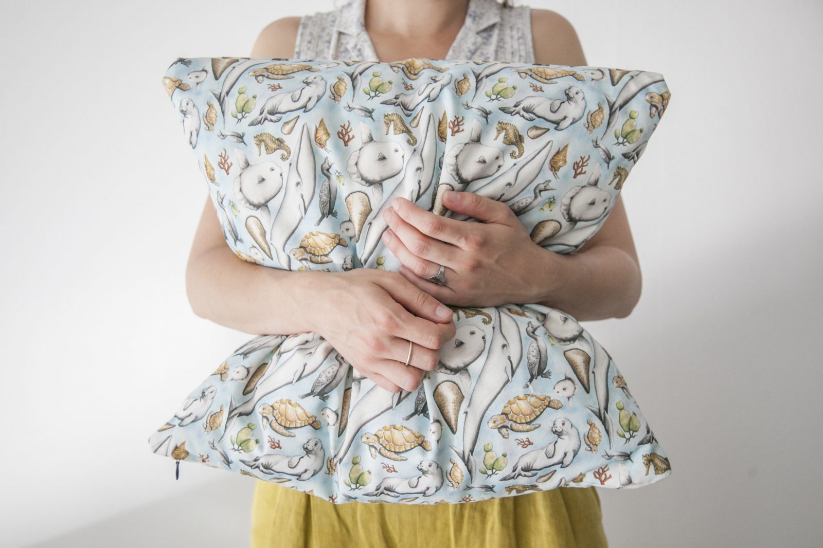 Funda de coixí 50 x 50 cm de sarja de cotó. Amb cremallera invisible al baix.