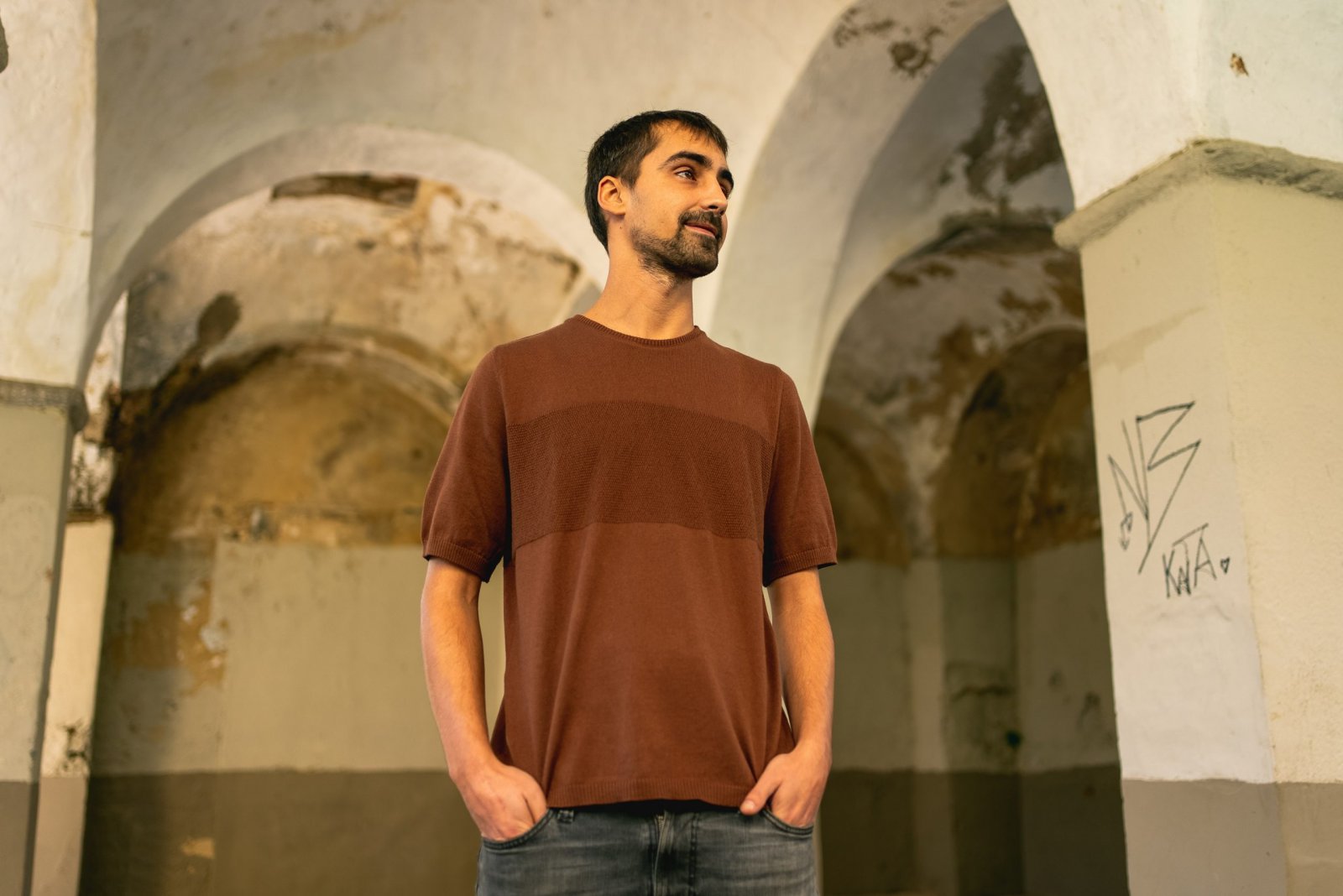 Samarreta unisex 100% cotó pentinat -tacte molt suau-, combina el punt pla amb una franja al centre de punt d’arròs.