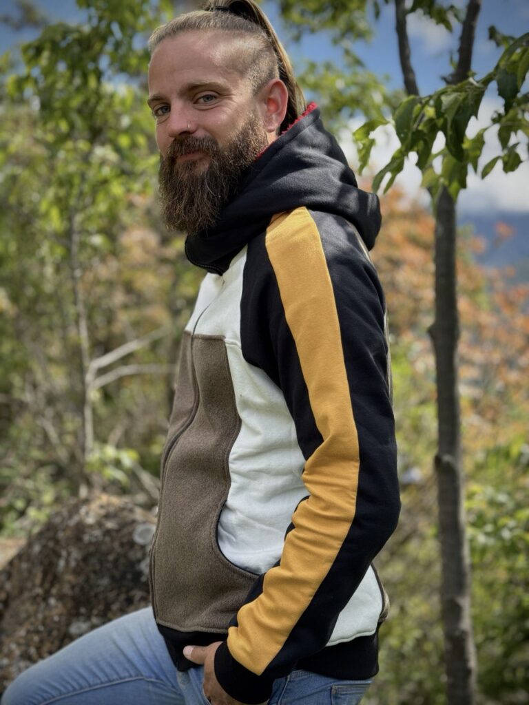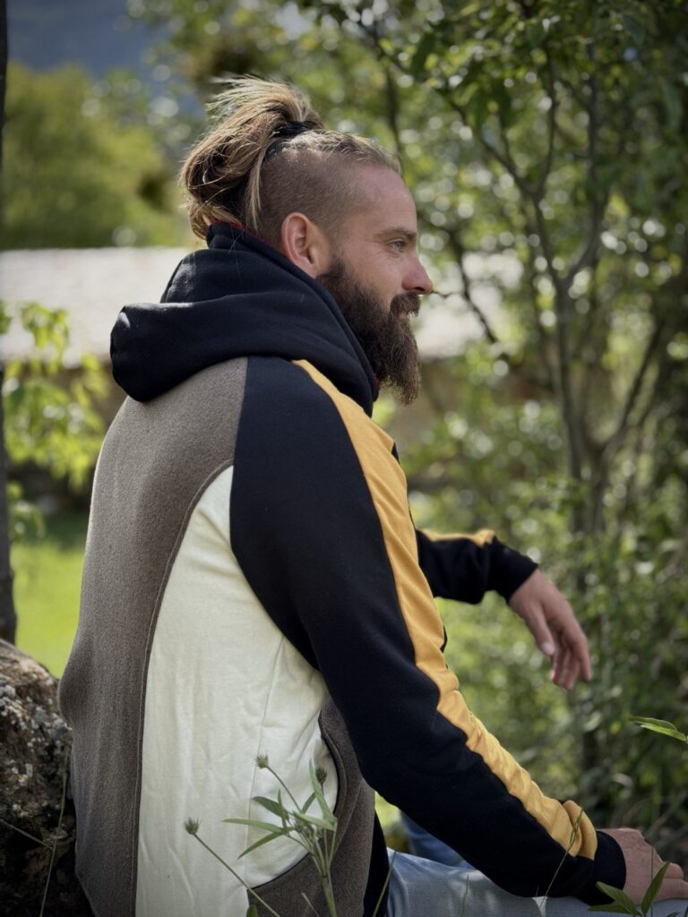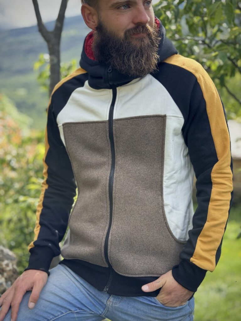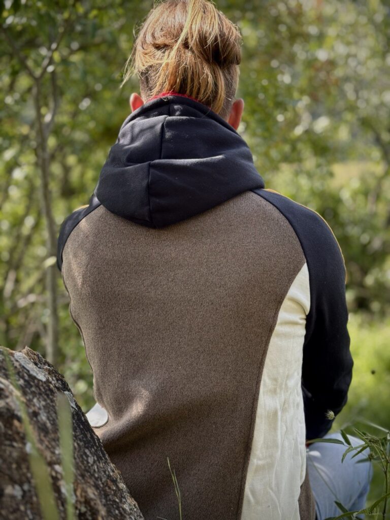 La MOIXÓ és una dessuador a unisex, que s'ajusta perfectament al cos amb una certa amplitud, acompanyant la teva mobilitat en tot moment. Té una caputxa, ajustada al coll de la dessuadora, que et protegeix del vent i el fred.