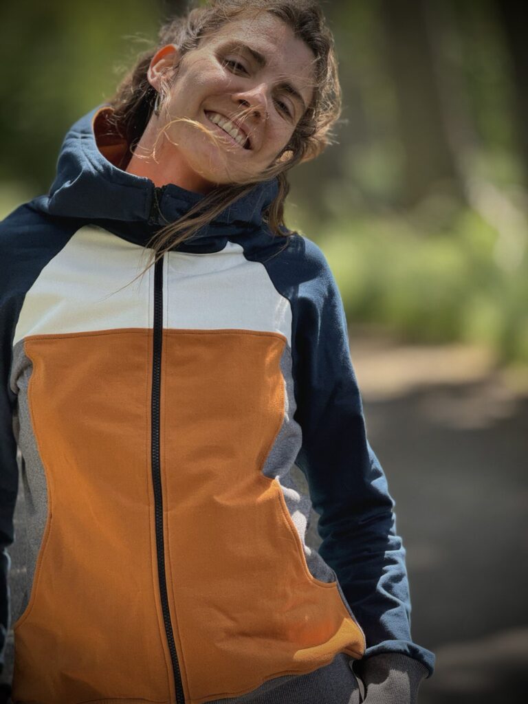 La MOIXÓ és una dessuadora per a noia, que s'ajusta perfectament al cos amb una certa amplitud, acompanyant la teva mobilitat en tot moment. Té una caputxa, ajustada al coll de la dessuadora, que et protegeix del vent i el fred.