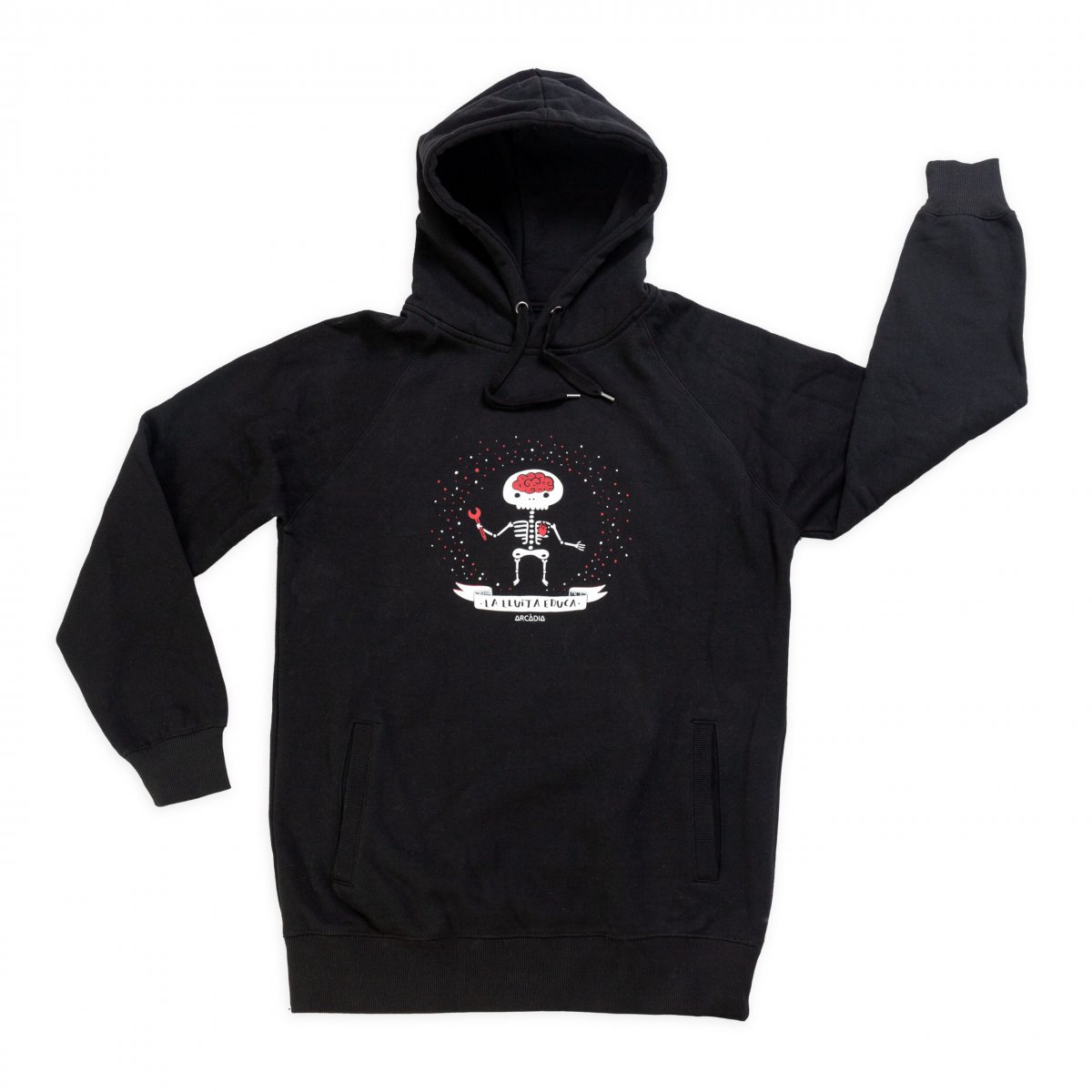 Dessuadora de cotó negre amb butxaques. Disseny realitzat per Judit Panxeta exclusiu per Arcàdia. Serigrafia feta a mà. Teixit molt agradable i calentó.