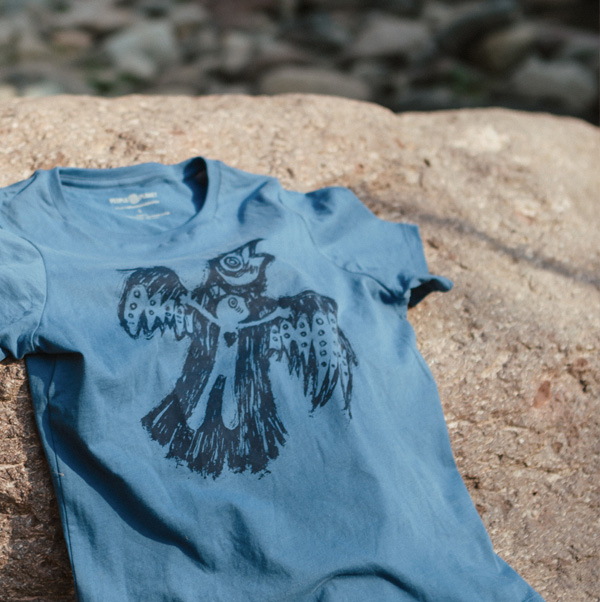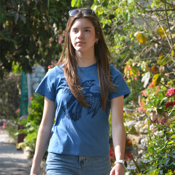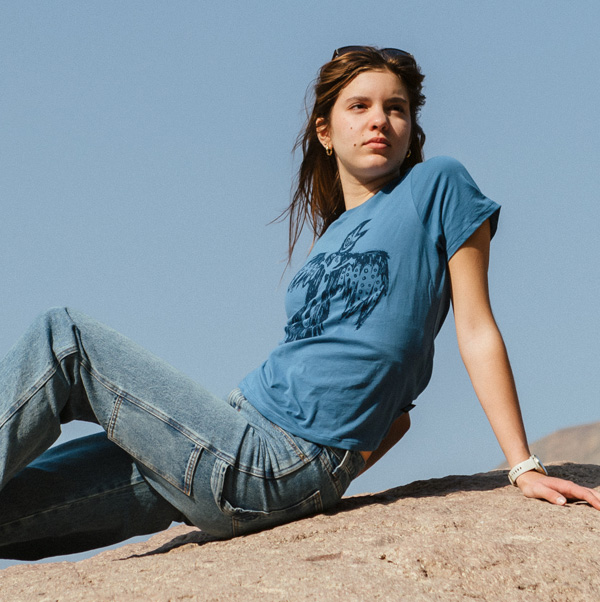 Esta camiseta celebra la simbiosis entre el ser humano y la naturaleza. El diseño muestra un pájaro majestuoso, pero al observarlo detenidamente revela la figura de una persona en su interior. Esta imagen simboliza nuestra profunda conexión con el entorno natural, evocando el ancestral sueño de los primeros habitantes de obtener la esencia de los animales para experimentar la vida desde una perspectiva más armónica y libre.