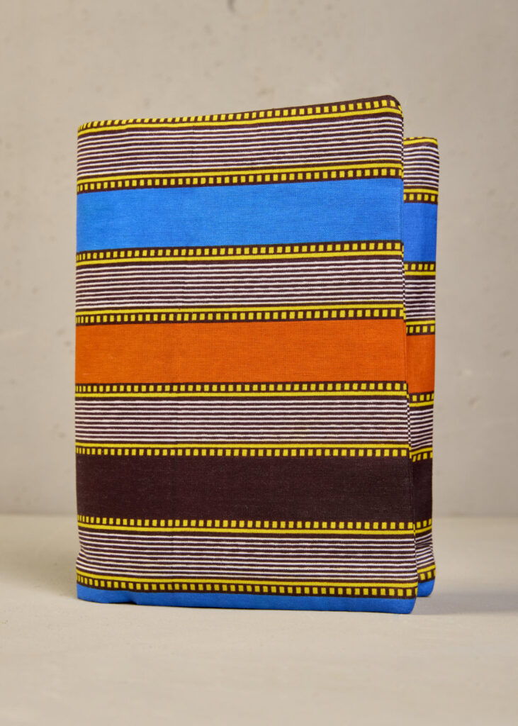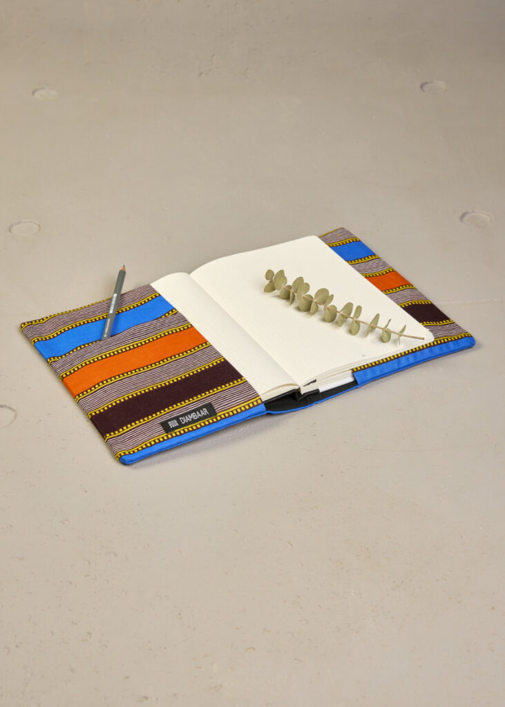 Funda de cuaderno, agenda o libro de tela estampada tamaño cuartilla. Funda acolchada para protección, flexibilidad y suavidad. Bolsillo interior para guardar apuntes, punto de libro o lápiz. Forro interior de algodón en contraste color negro.