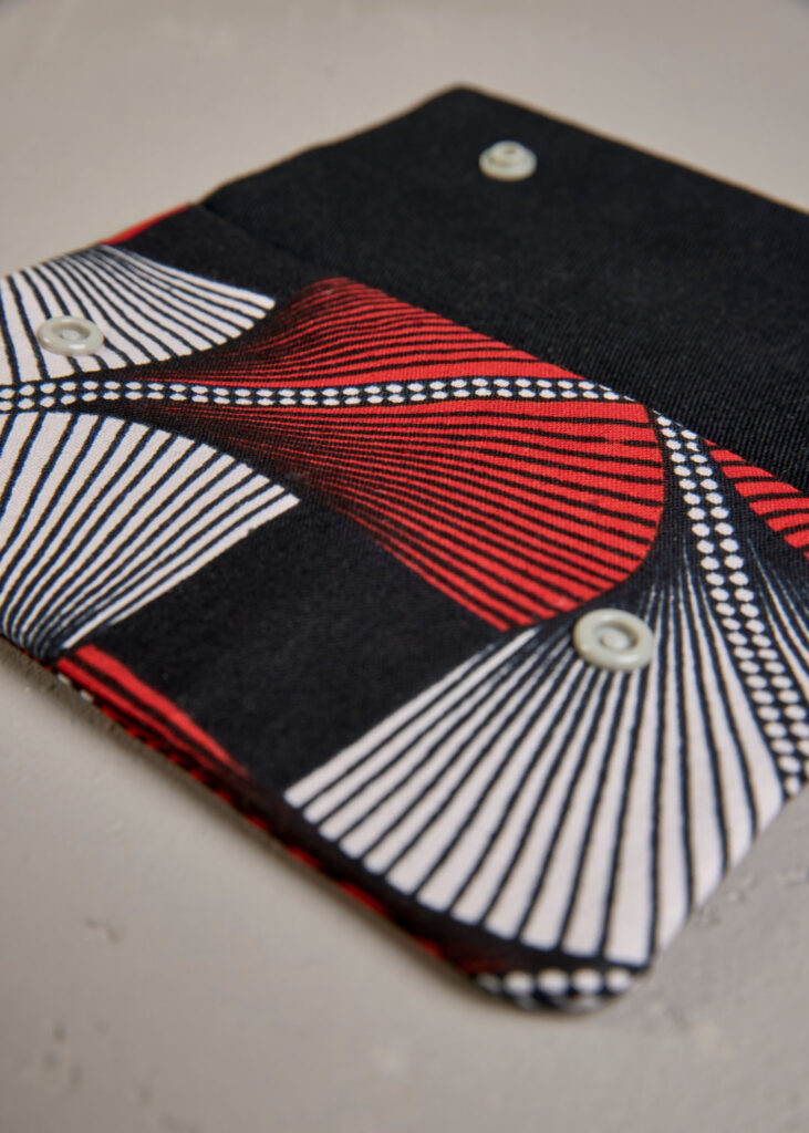 Funda pitillera para tabaco de liar estampada de algodón de diseño elegante y práctico. Hecha con tejido wax y forro interior en loneta contraste color negro.