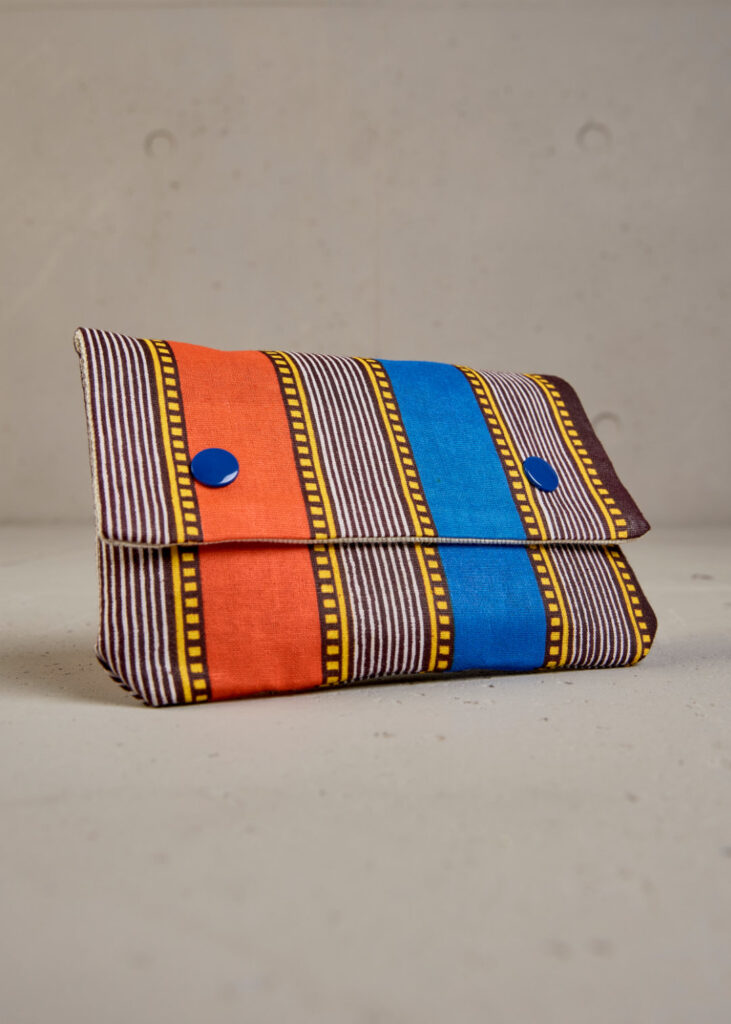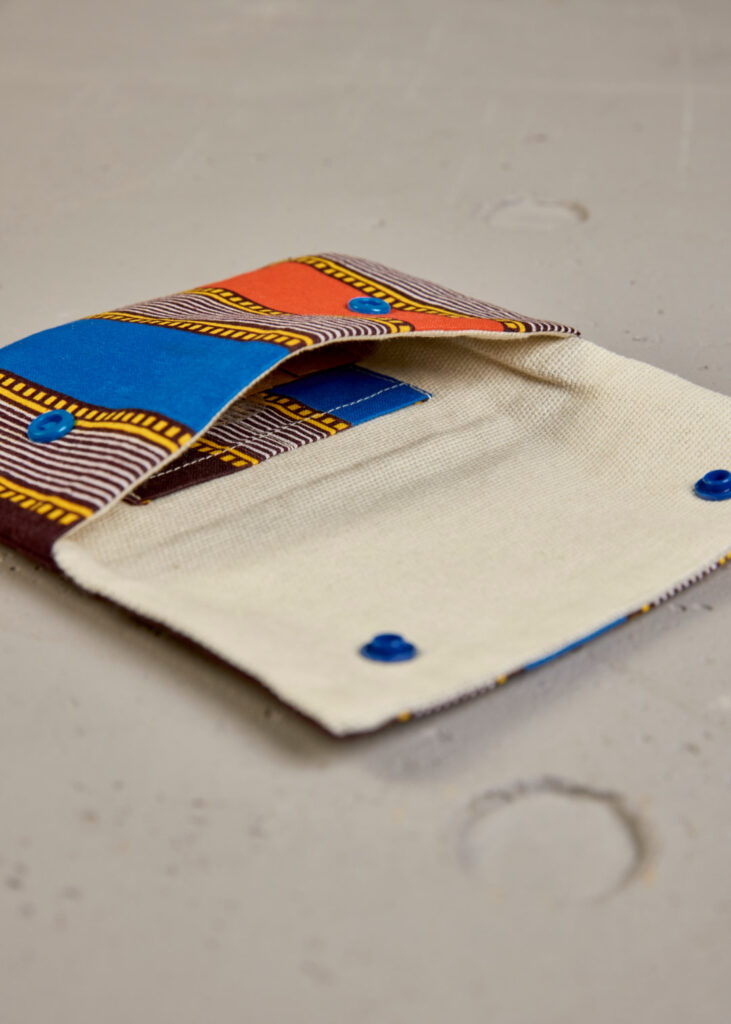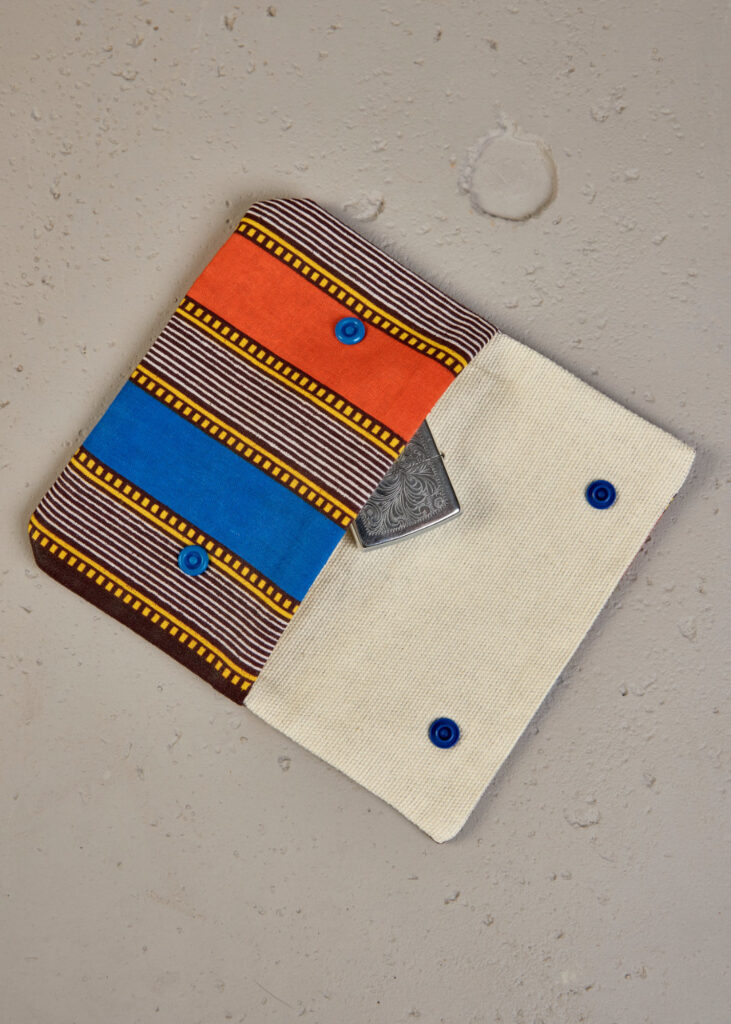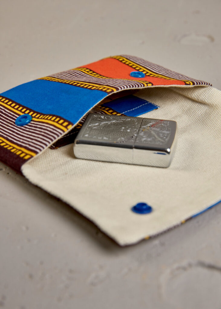 Funda pitillera para tabaco de liar estampada de algodón de diseño elegante y práctico. Hecha con tejido wax y forro interior en loneta contraste color beige.