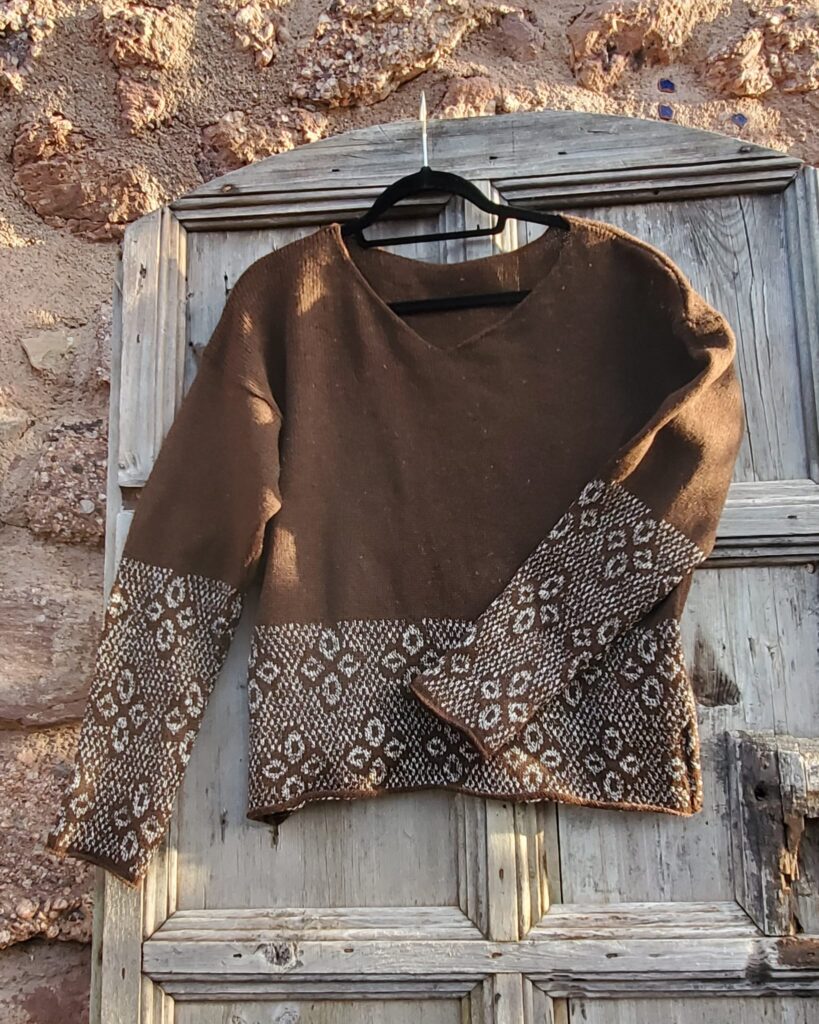 Teixit amb tricotosa al nostre taller al Pirineu lleidetà.