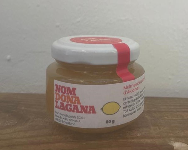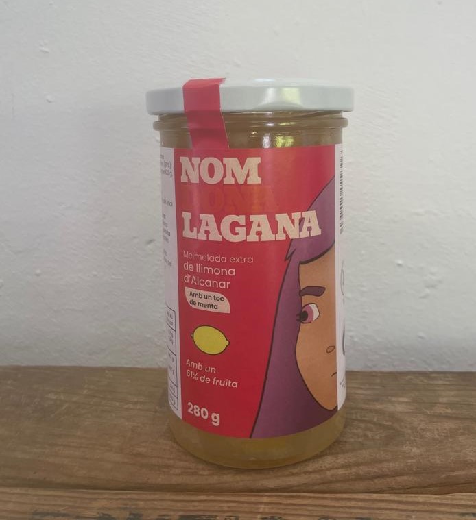 Melmelada extra de llimona d’Alcanar amb un toc de menta fresca. Ingredients: llimona (61%), sucre blanc (39%), menta. Amb 61 g de fruita
