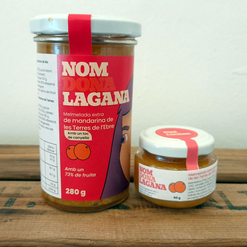Melmelada extra de mandarina de les Terres de l’Ebre amb un toc de canyella. Ingredients: mandarina (73%), sucre blanc (24%), suc de llimona (3%), canyella. Sense conservants ni colorants. Aquesta melmelada de mandarina conté pell, que li dona un sabor lleugerament amargant. És ideal per a combinar amb xocolata i carns blanques. Comprant Nomdonalagana contribueixes a la contractació de dones en situació de violència masclista.