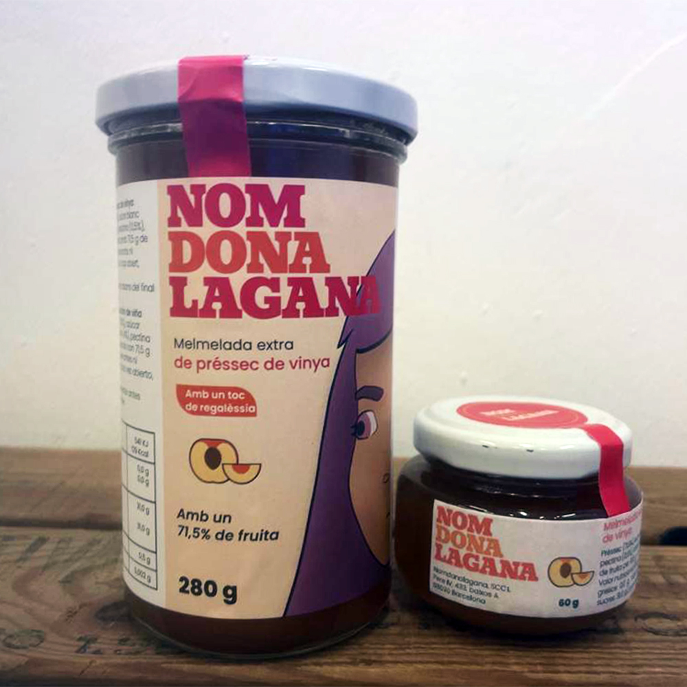 Melmelada extra de préssec de vinya amb un toc de regalèssia. Ingredients: préssec (71,5%), sucre blanc (24%), suc de llimona (4%), pectina (0,5%), arrel de regalèssia. Amb 71,5 g de fruita per 100 g i poc sucre afegit. Sense conservants ni colorants. A més dels usos clàssics per a rebosteria, postres i esmorzars, la melmelada de préssec marida a la perfecció amb formatges cremosos (tipus brie), salmó fumat o carns. La combinació amb gelat de vainilla també és molt recomanable. Comprant Nomdonalagana contribueixes a la contractació de dones en situació de violència masclista.