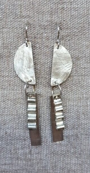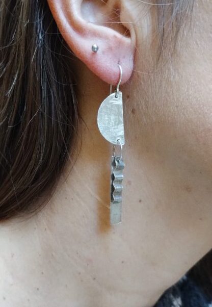 arracades de plata amb ganxo i mitja lluna amb ones penjant.