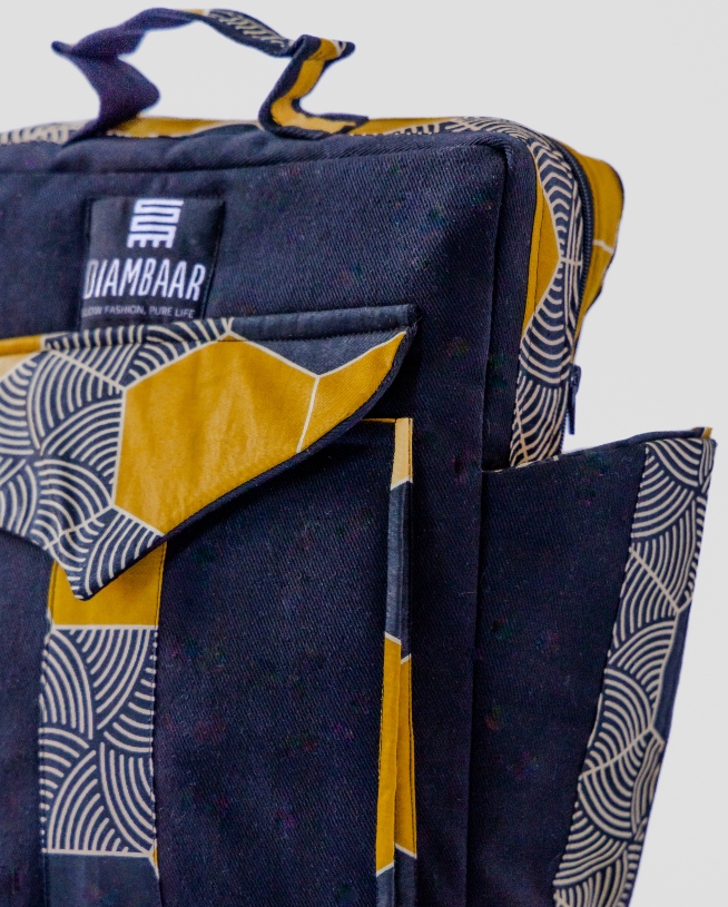 Motxilla amb fragments de tela wax amb compartiment múltiple