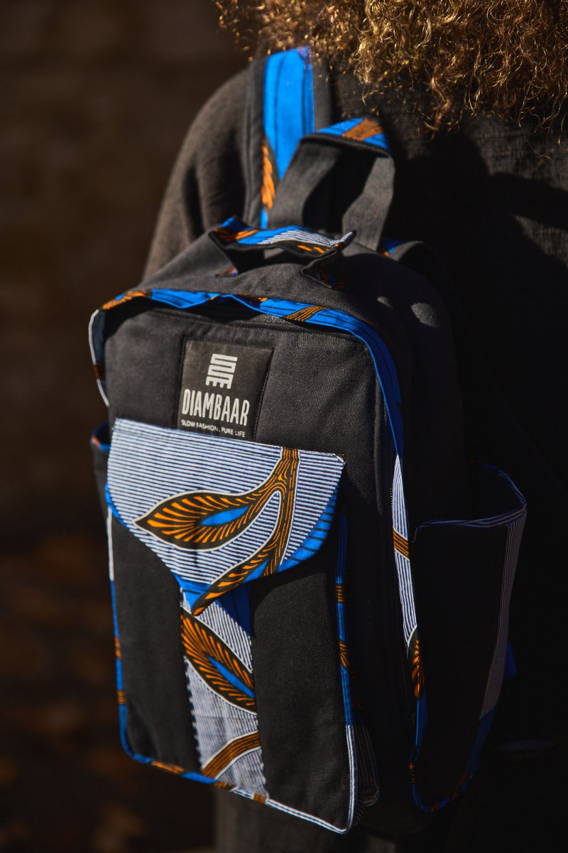 Motxilla amb fragments de tela wax amb compartiment múltiple