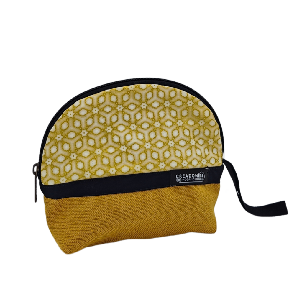 Material: Aquest necesser petit està fet a mà per les dones que formem en el Programa Social de Creadoness. Està confeccionat amb una suau loneta de cotó bicolor, amb la característica de ser antimanchas. A l'interior està forrat amb popelí negre.