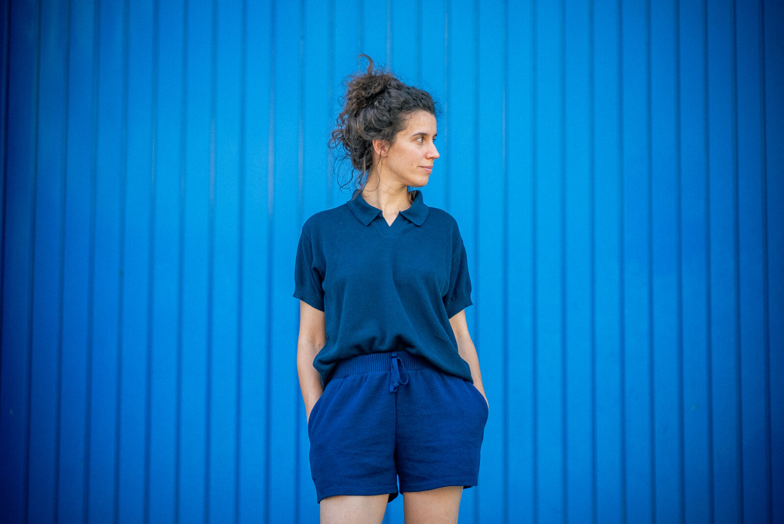 Pantalons 100% cotó pentinat -tacte molt suau- en punt pla, de color blau. Amb butxaques a les costures als laterals i goma a la cintura de 5 cm.