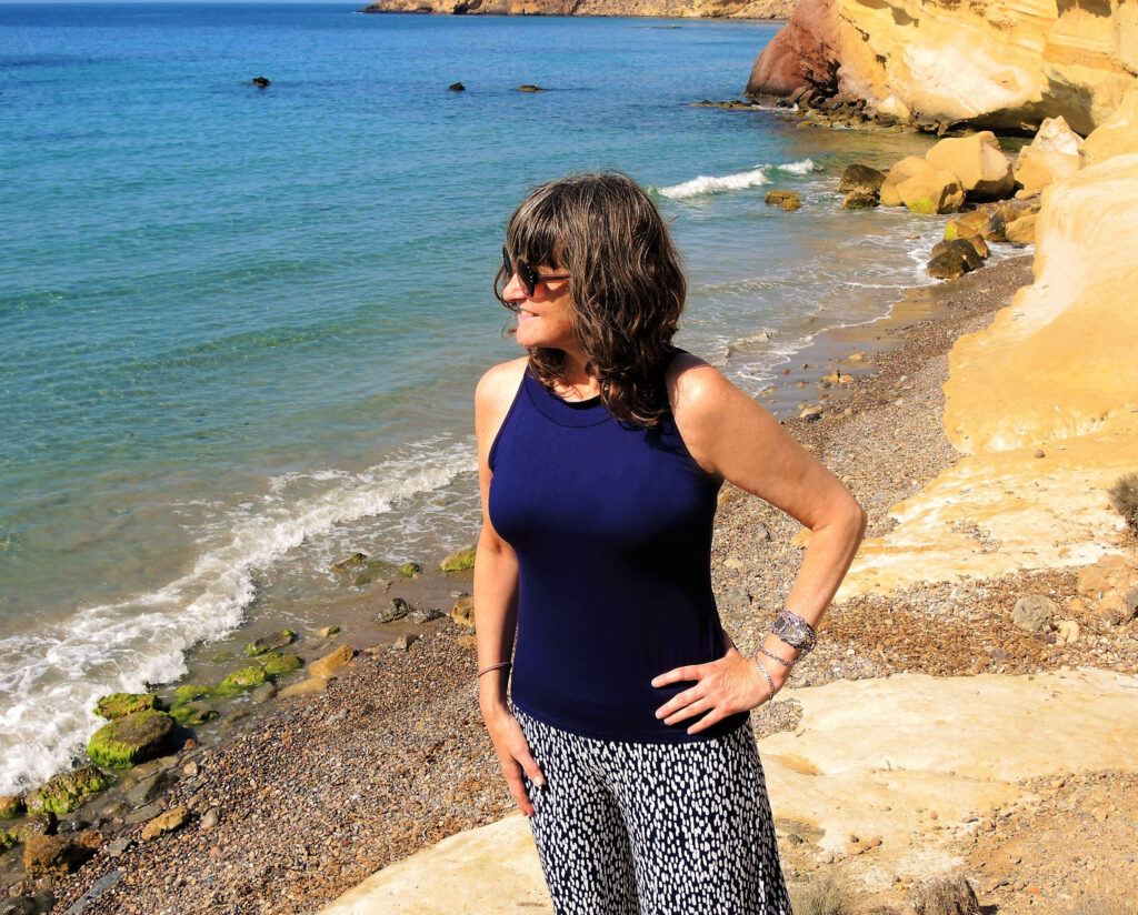 Samarreta sense màniga i coll lleugerament alt. Molt comfortable, estilosa i afavoridora ja que ressalta les espatlles.