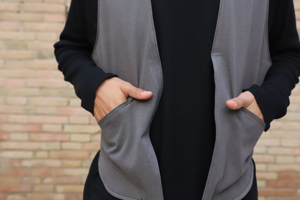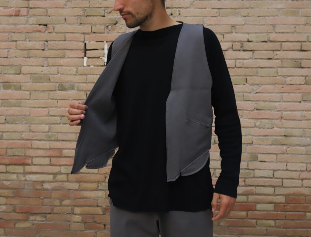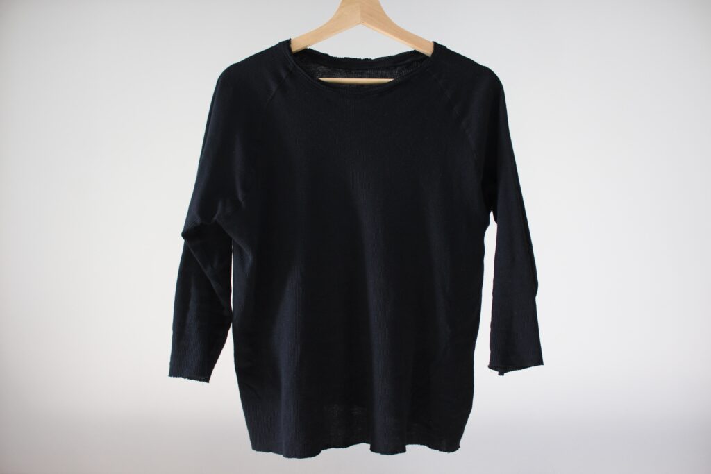 Samarreta negra de canalé 1x1. Amb màniga ranglan i acabats a tal viu.