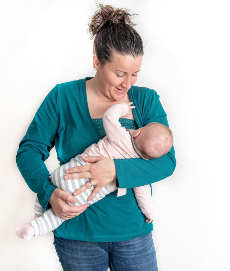 Les samarretes tenen un top incorporat d'un color més fosc i amb topets que et permetrà donar el pit amb molta facilitat, ja sigui per sobre o per sota, si fas porteig el podràs baixar sense problemes perquè el nadó accedeixi al pit sense dificultats. Si estàs embarassada la podràs lluir perquè s'adapta perfectament a la panxa, i també la seguiràs utilitzant després del deslletament, així que la vida útil de la samarreta és molt llarga.