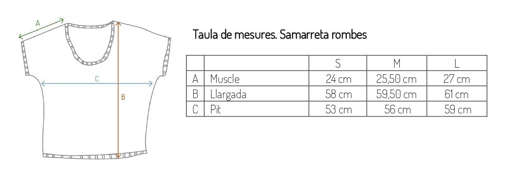 Samarreta 100% cotó, amb calats perquè sigui més fresqueta; amb màniga japonesa i escotada.