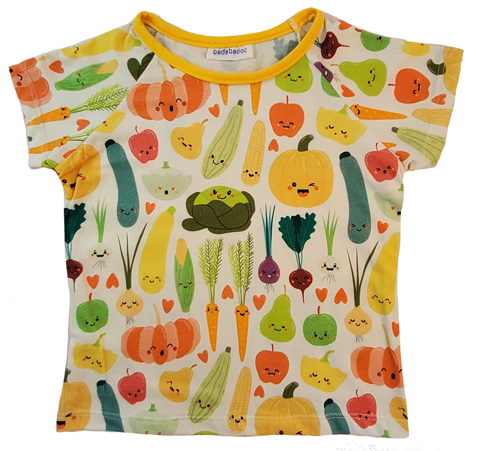Samarreta de punt suau amb màniga raglan i divertir estampat de verduretes.