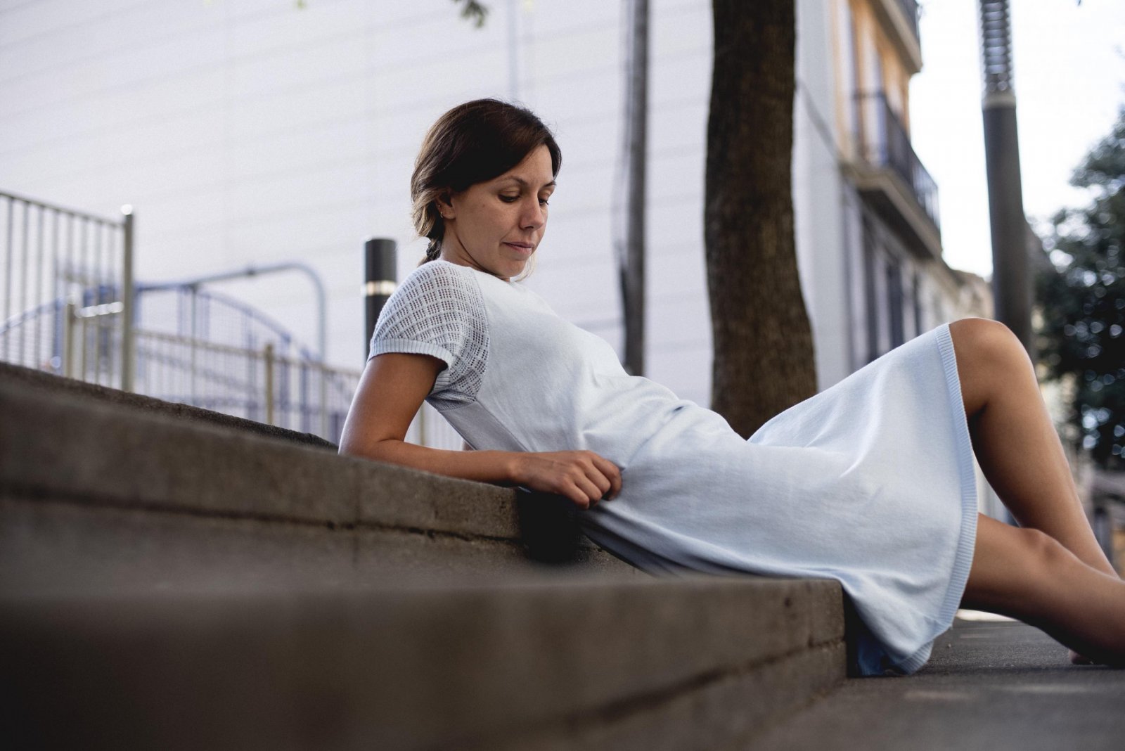 Vestit 100% cotó pentinat -tacte molt suau-, combina el punt pla del cos amb el calat de les mànigues raglan i un tros d’esquena. A l’esquena té una goma a l’alçada de la cintura per recollir el vestit i donar-li una mica de forma.