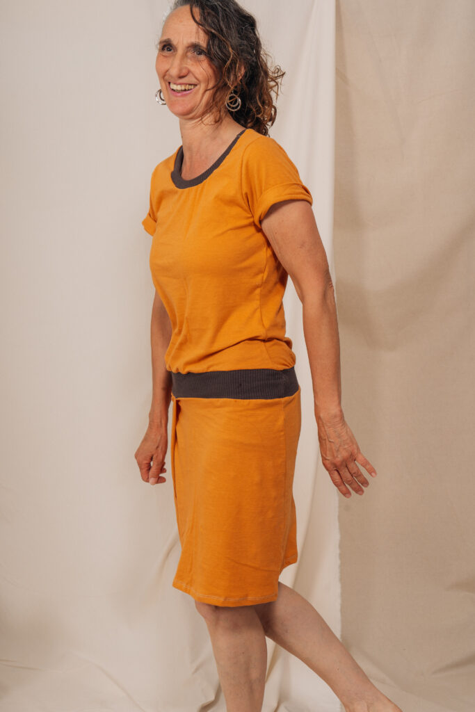 Vestit de teixit de samarreta, punt llis, combinat amb canalé, del mateix color o diferent (escriu-nos si vols una combinació personalitzada a benvinguts@cotoroig.cat)
