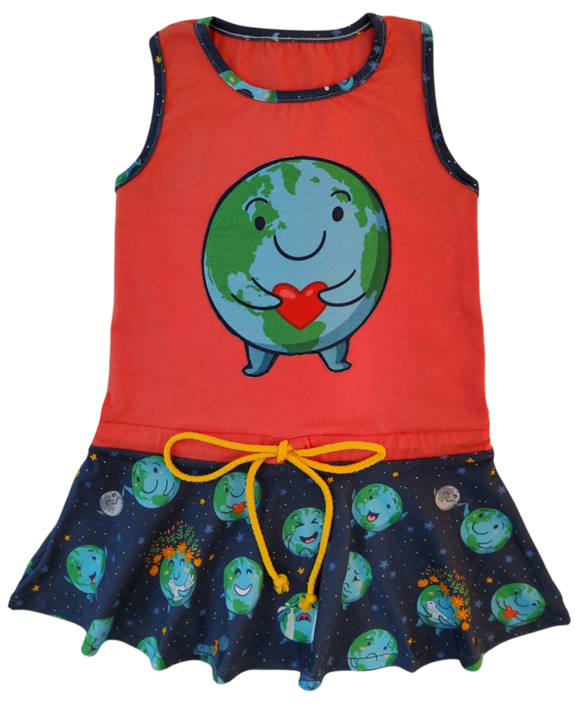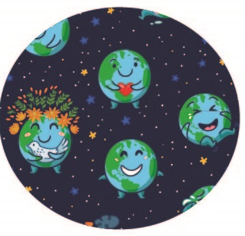 Amb un estampat de la nostra estimada Terra, dissenyat especialment per fer somriure les més petites.