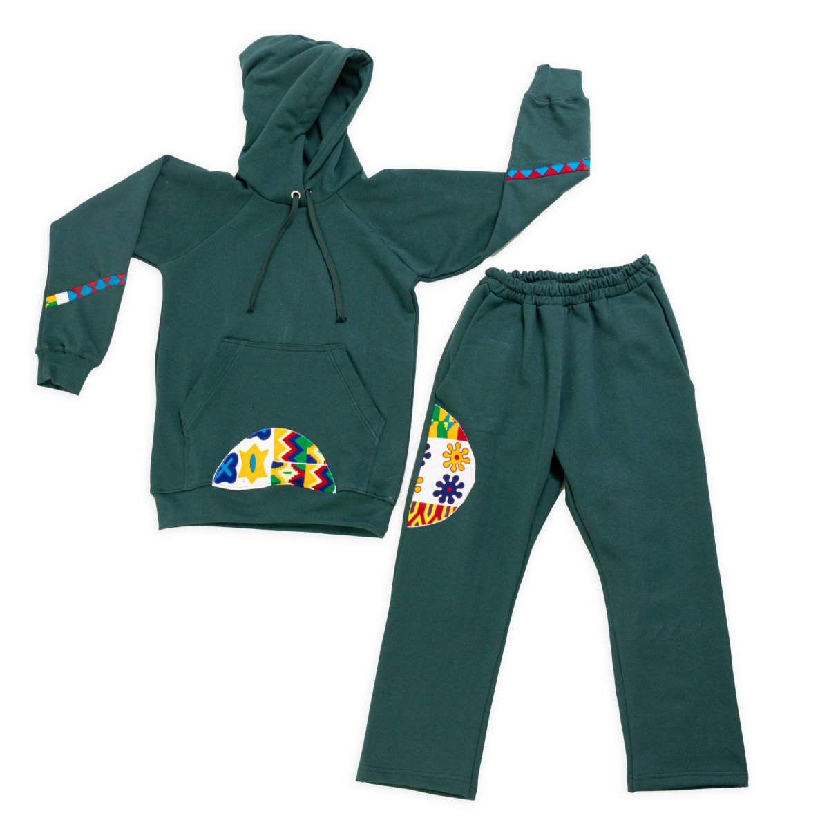 Xandall infantil i juvenil de cotó amb motius de teles de disseny africà. Dissenyat i elaborat per Top Manta per a Arcàdia.