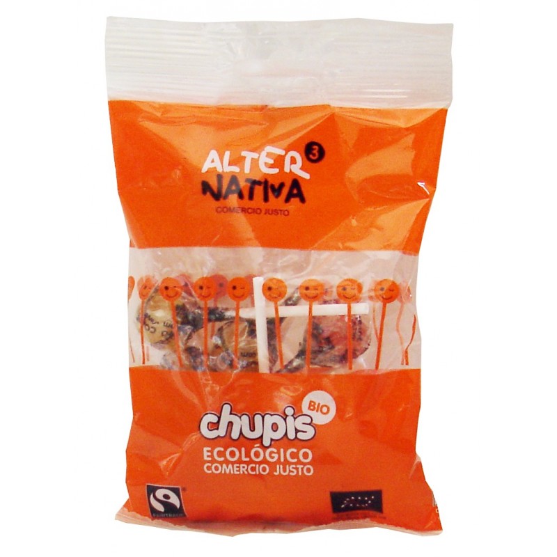 Vuit caramels amb pal de llimona, mandarina, maduixa i cola. De comerç just i agricultura ecològica, elaborats amb sucre de canya Golden Light de la cooperativa Manduvirá i/o Felsina, del Paraguai.