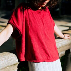 Les peces de punt que trobaràs aquí estan texides a Olot, a la Garrotxa, i confeccionades per mi al meu taller, situat al Barri Vell i a 10 minuts del teixidor. Compro el fil, 100% cotó, i això em permet controlar la qualitat del teixit, reduir la merma -ja que només teixim el que necessito- i crear diferents teixits partint del mateix fil, combinant colors i punts diferents.