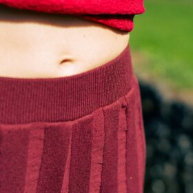 Les peces de punt que trobaràs aquí estan texides a Olot, a la Garrotxa, i confeccionades per mi al meu taller, situat al Barri Vell i a 10 minuts del teixidor. Compro el fil, 100% cotó, i això em permet controlar la qualitat del teixit, reduir la merma -ja que només teixim el que necessito- i crear diferents teixits partint del mateix fil, combinant colors i punts diferents.